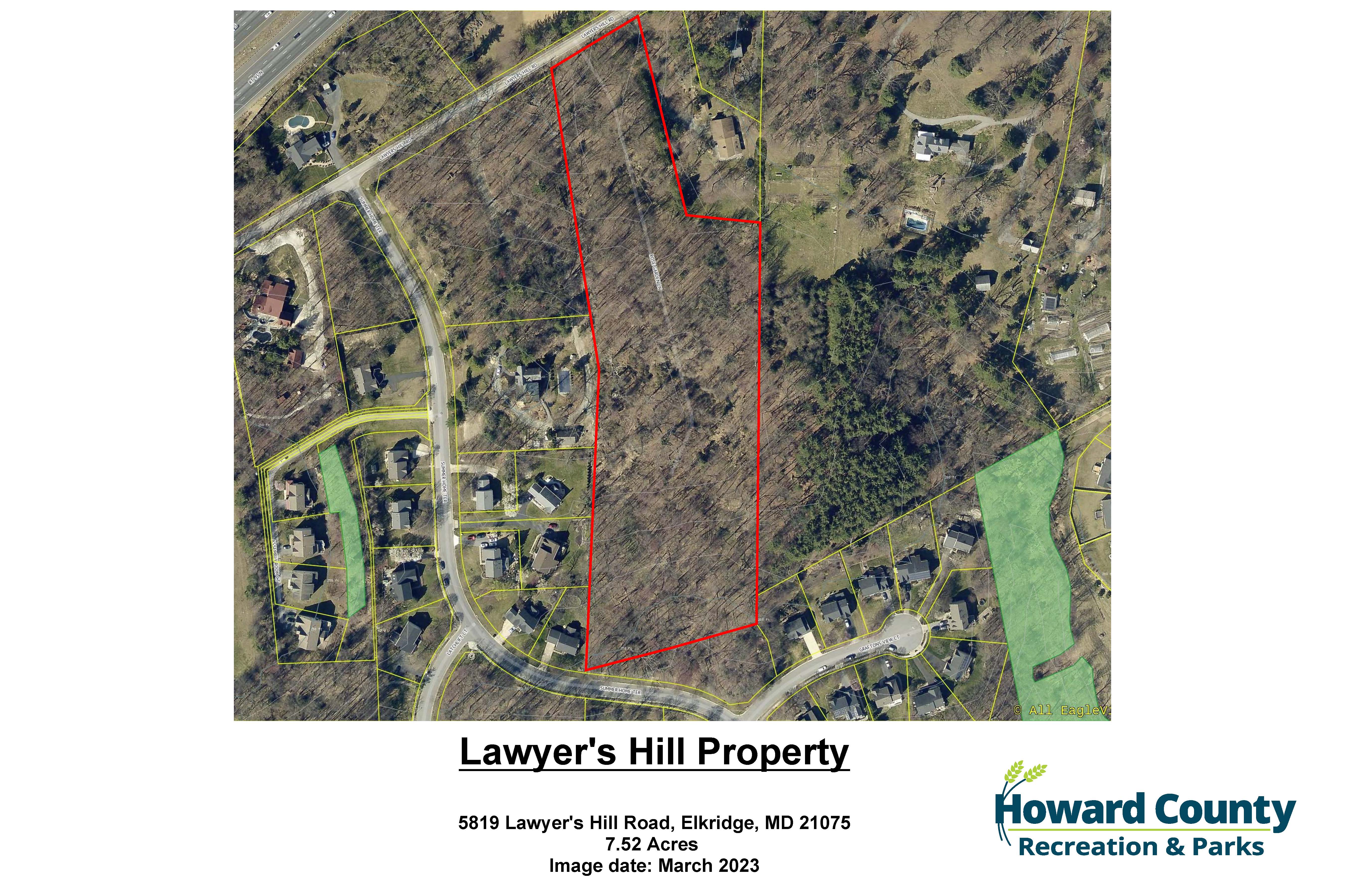The Howard County Department of Recreation and Parks will hold a public meeting on Wednesday, October 22, 2025, at 6 p.m. at Elkridge Landing Middle School, 7085 Montgomery Road, Elkridge, MD 21075 (in the cafeteria) to discuss the Lawyers Hill property (8.7 acres in Elkridge) that the County purchased in 2024. This parcel is listed on the Maryland Historical Trust Maryland’s Inventory of Historic Properties, and the county would like to hear from the public on possible ways to develop and preserve the property that may include a park while retaining the wooded character that is currently on the site.